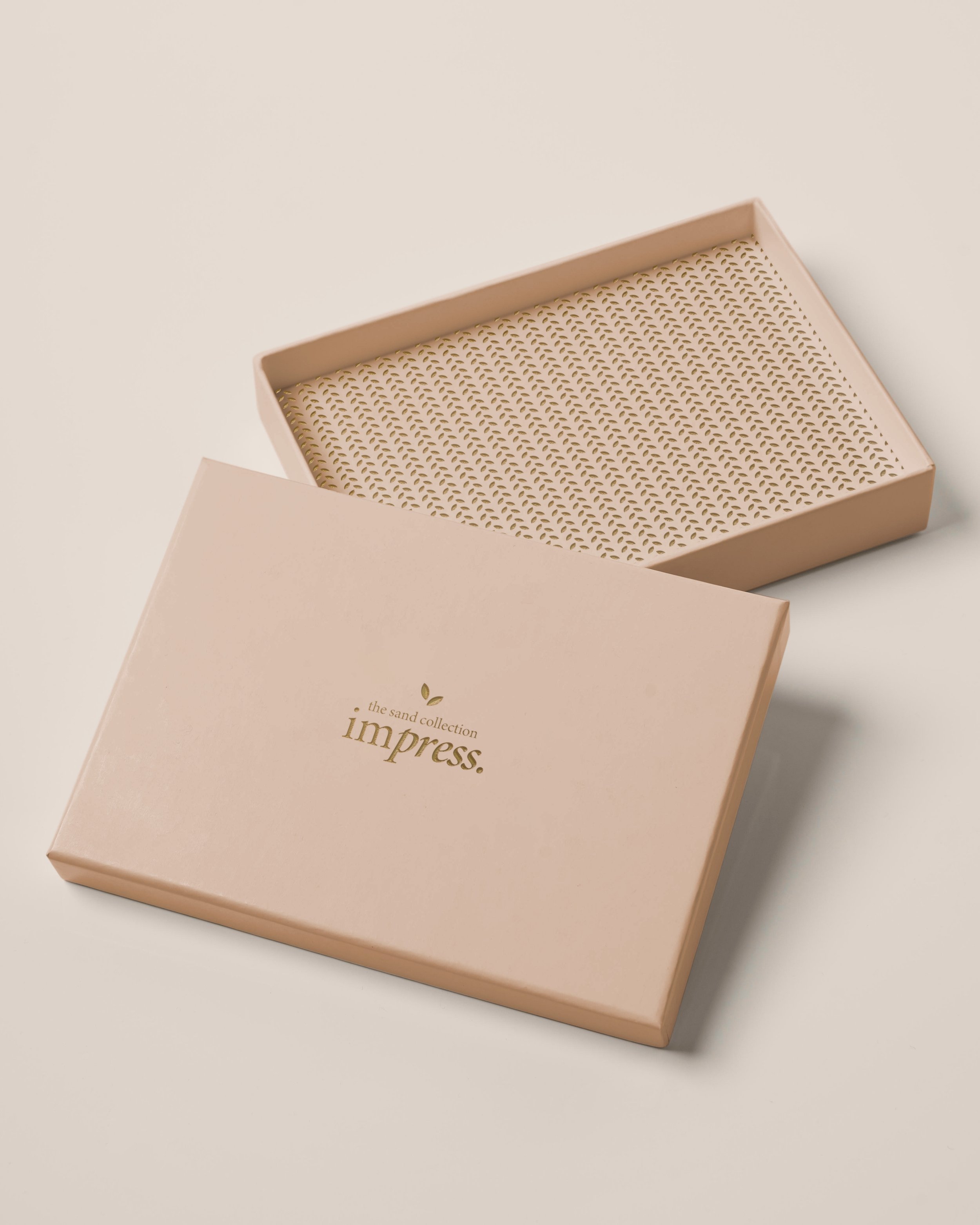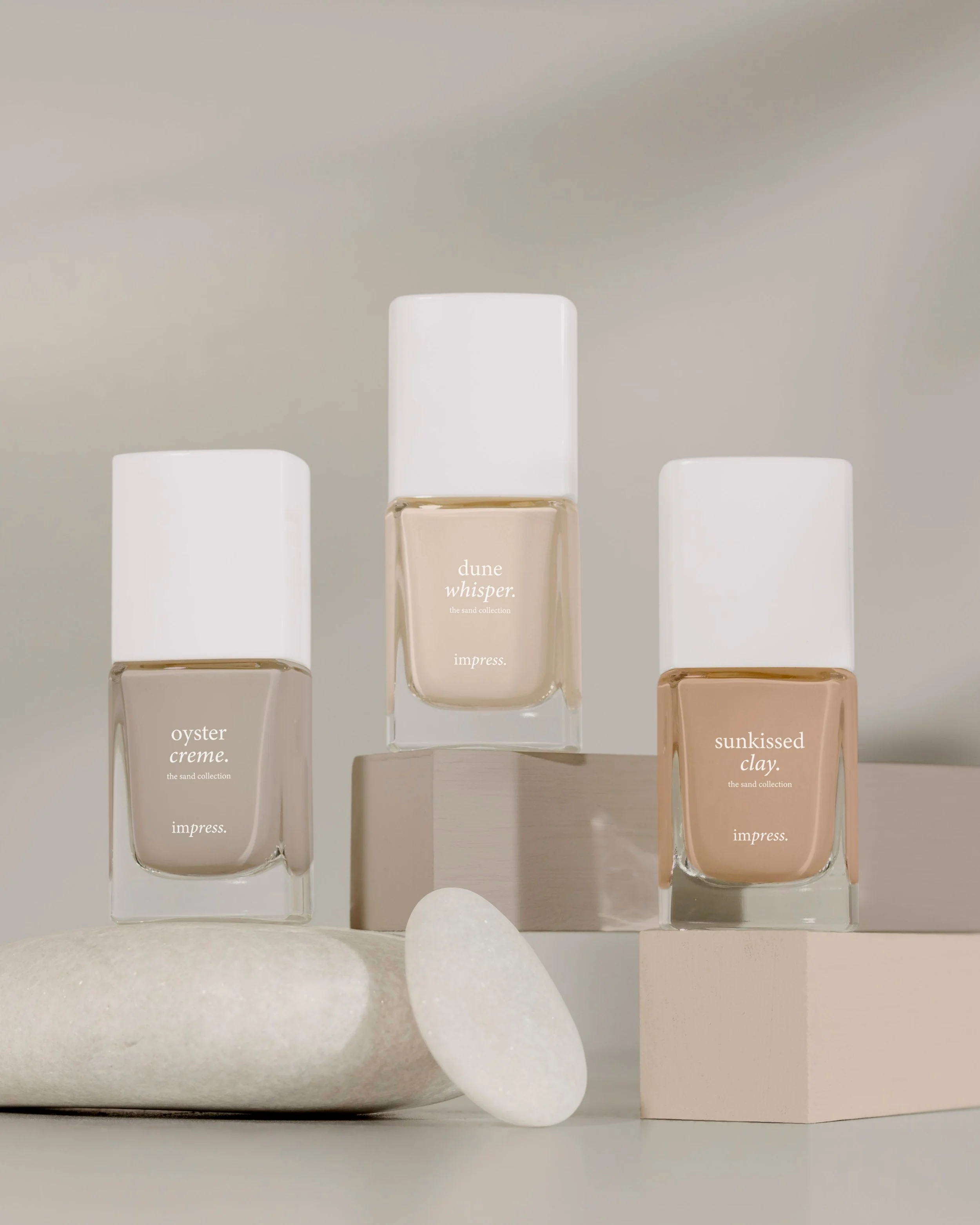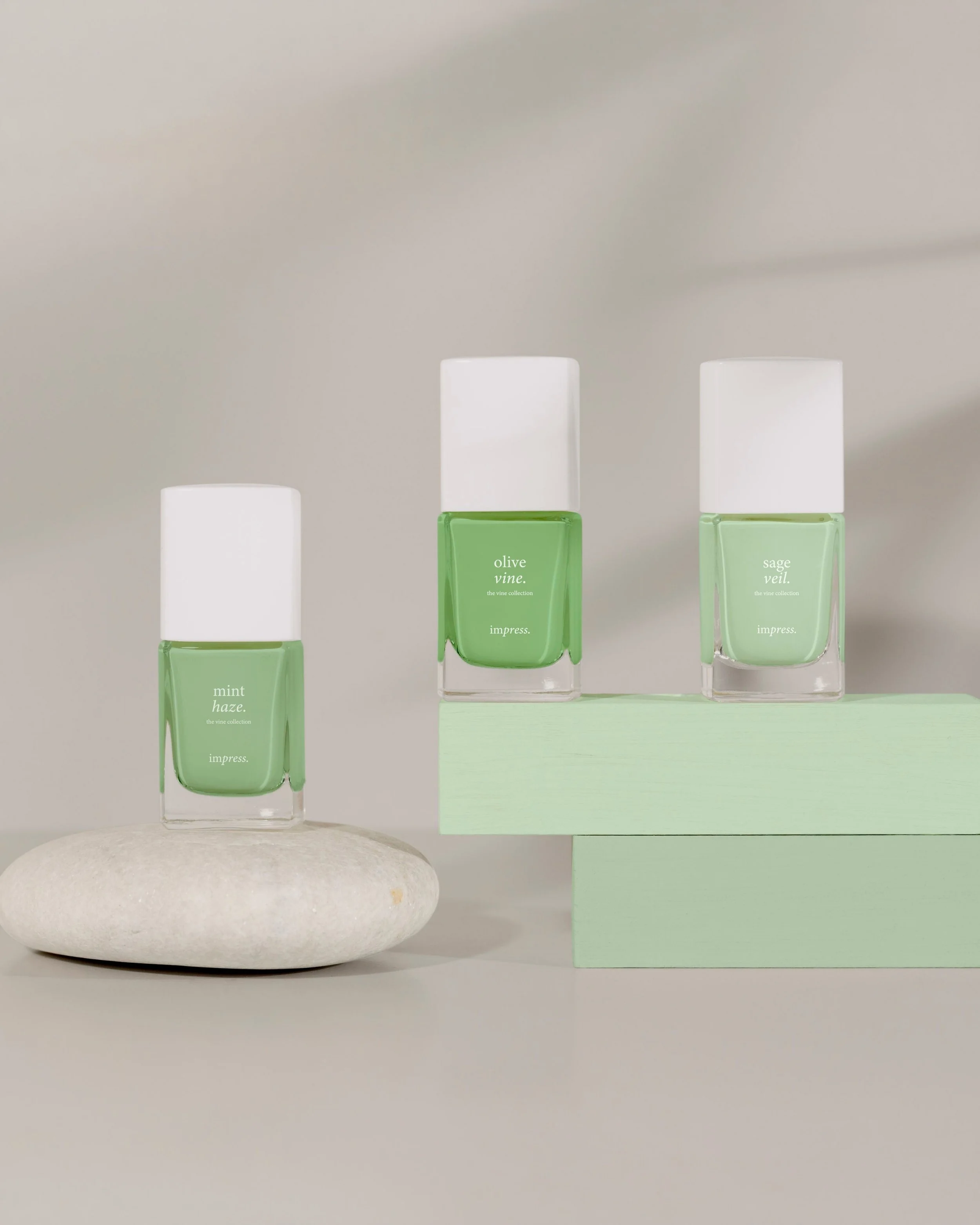 Impress is a nail care brand formulated with 100% organic, natural ingredients, free from toxins and harsh chemicals. The goal is straightforward: create nail colours that are safer to use, better to live with, and still feels like a premium product. The design avoids the usual “eco” clichés and instead leans into a more editorial feel, so the brand reads as desirable first, with collections that translate nature into moods rather than trends. At its core, Impress is about making a statement without compromise. A manicure that looks good and feels good.