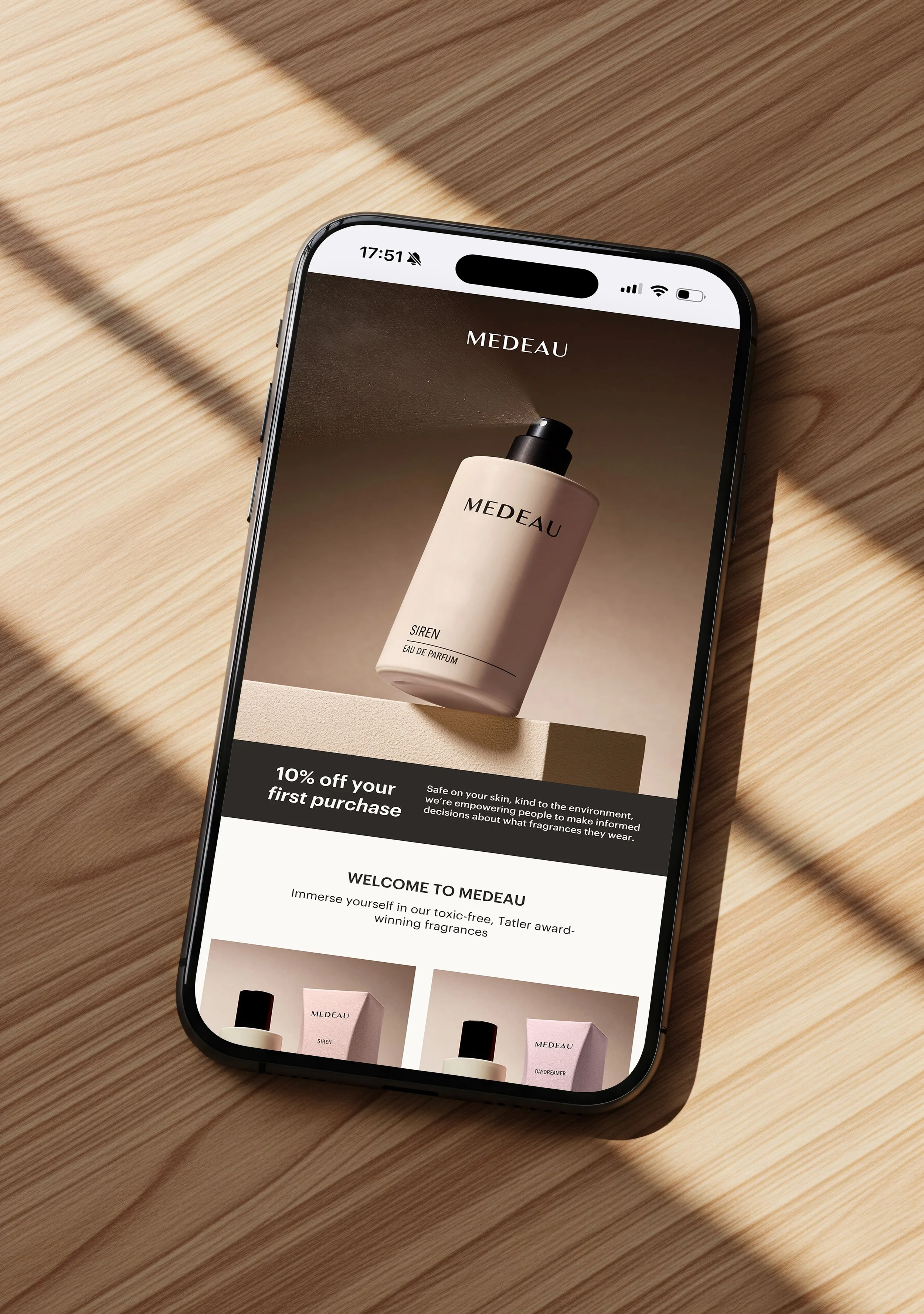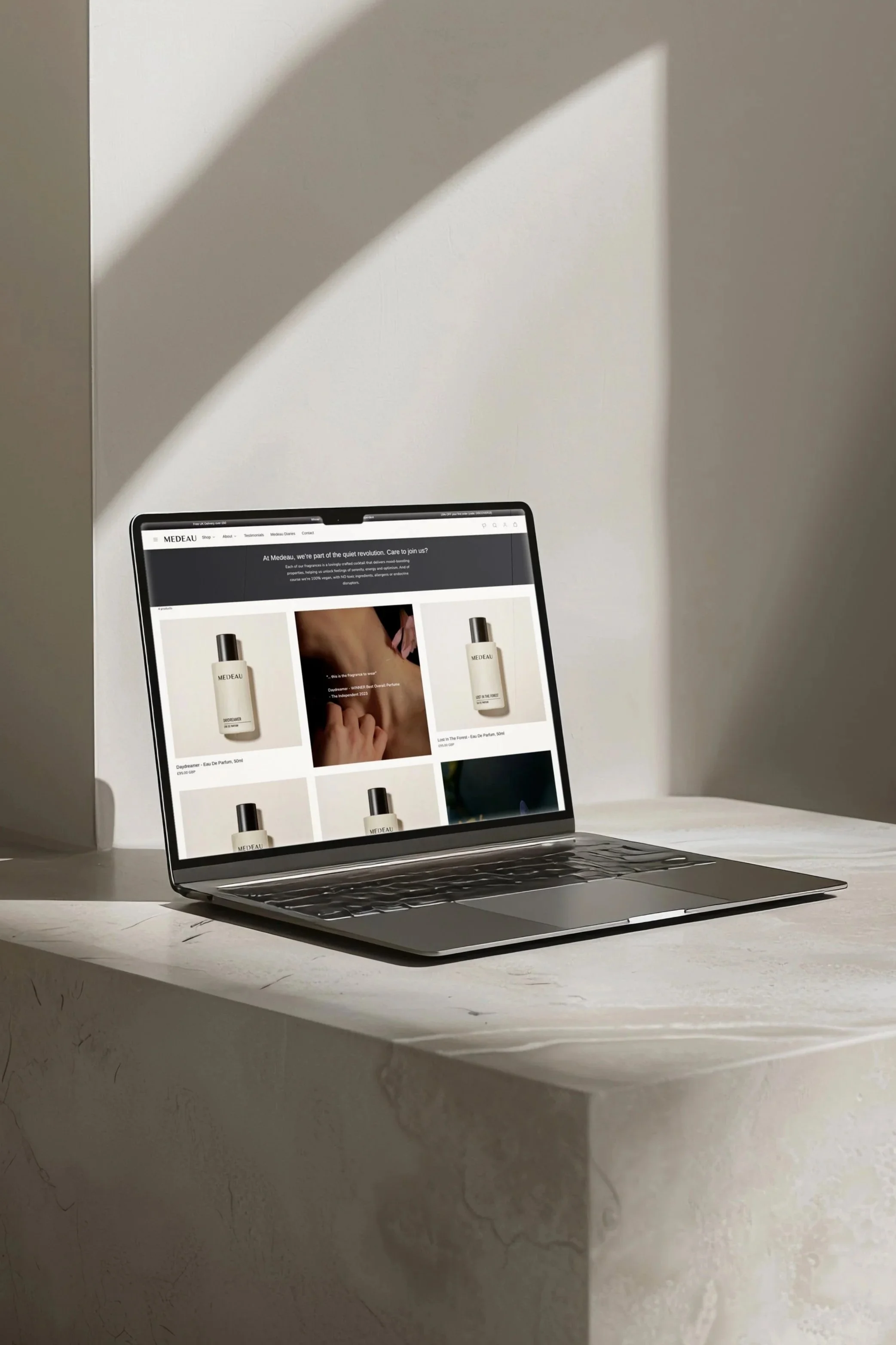 Medeau fragrances is a premium fragrance brand. As a small business, Medeau didn’t have the budget to produce constant high-end studio photography across its website, social media, and newsletters. We used AI as a creative production tool to create studio-style visuals. The goal was to translate scent into something you can almost sense through a screen. This allowed Medeau to maintain a premium, editorial look across every touchpoint, without the cost and constraints of physical shoots.